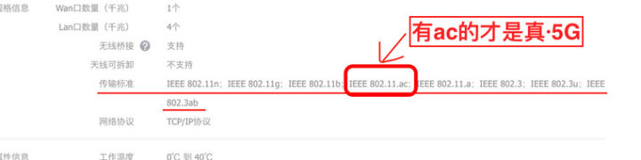那么大一坨都不用看,都是老舊的標準,速度慢。而802.11.ac是現(xiàn)在最強、最快的,有這個的才是真正的5g路由器,購買時認準802.11.ac就可以了。